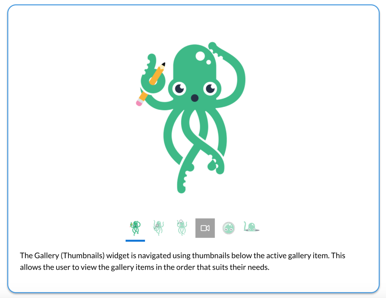 ● A thumbnail image of each gallery item is desired for context.