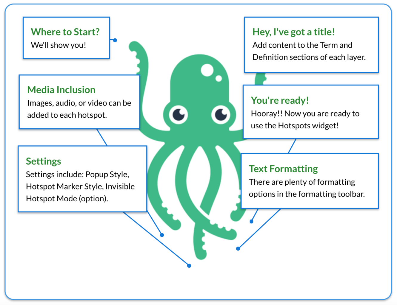 The Hotspots widget with Pop-up Style: “One at a time” is useful for content where: