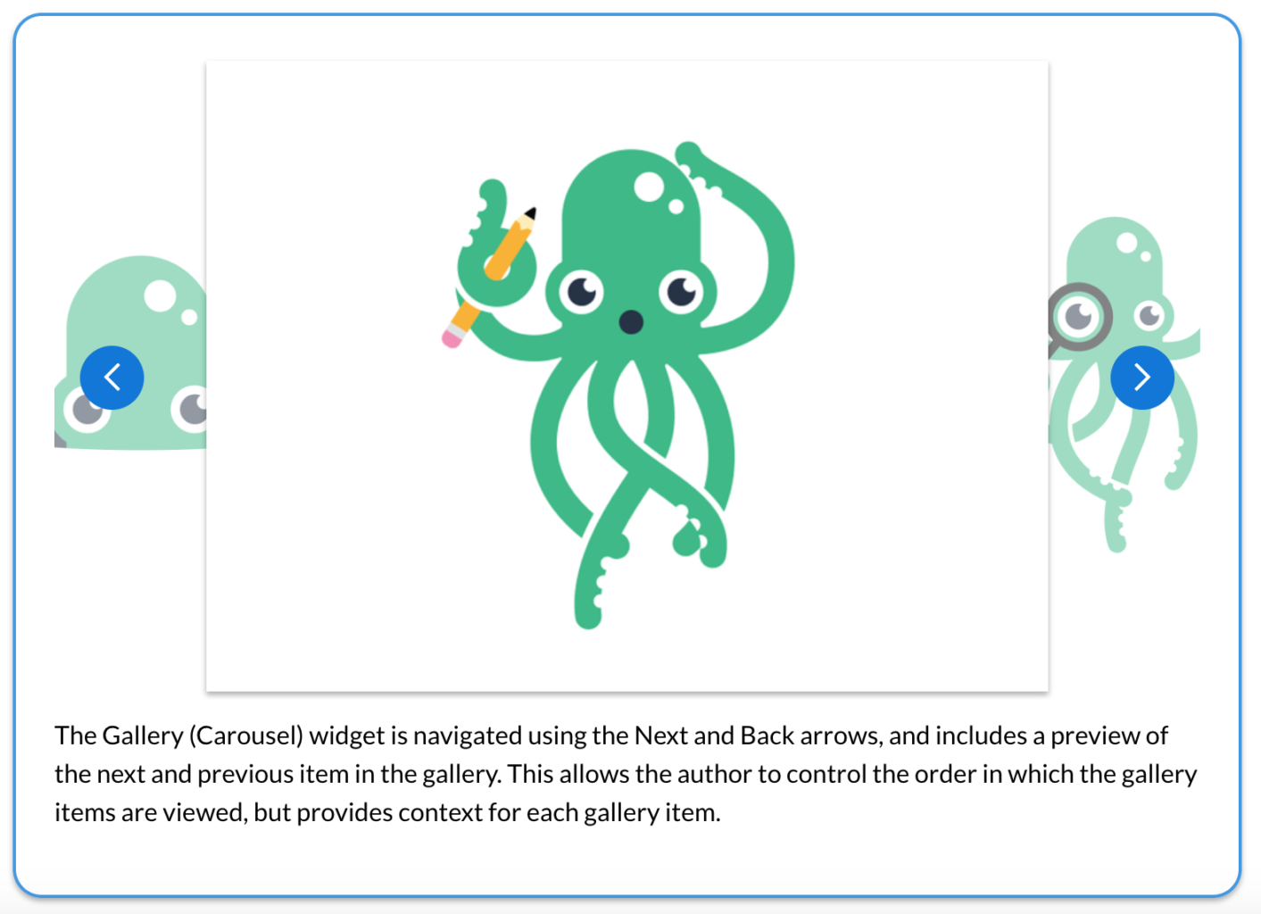 ● The order in which the gallery items are viewed is linear in nature.